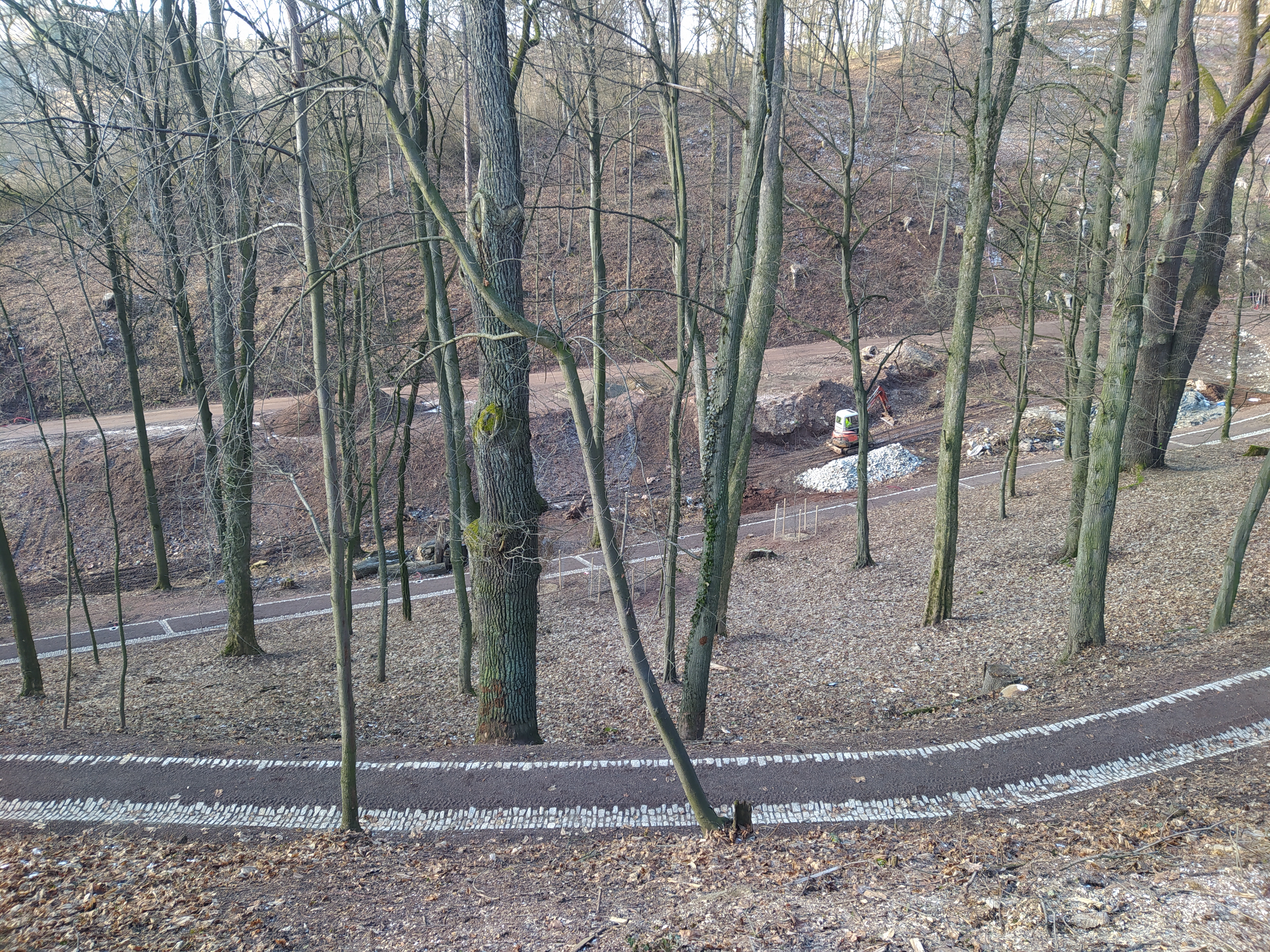 Zahájením stavební a arboristické činnosti v červenci loňského roku začala první fáze projektu, a to v podobě přípravy území, která spočívala v přípravě prostoru pro plánovanou stavební a logistickou činnost a také v čištění a probírkách prostoru od náletových dřevin a keřů. Předmětem prací nebylo pouze kácení, samozřejmě realizované se všemi potřebnými povoleními, ale i rozmístění 40 ptačích a 20 netopýřích budek na ponechávaných či arboristicky ošetřovaných stromech a také založení broukoviště z pokácených stromů pro vytvoření přírodního biotopu.