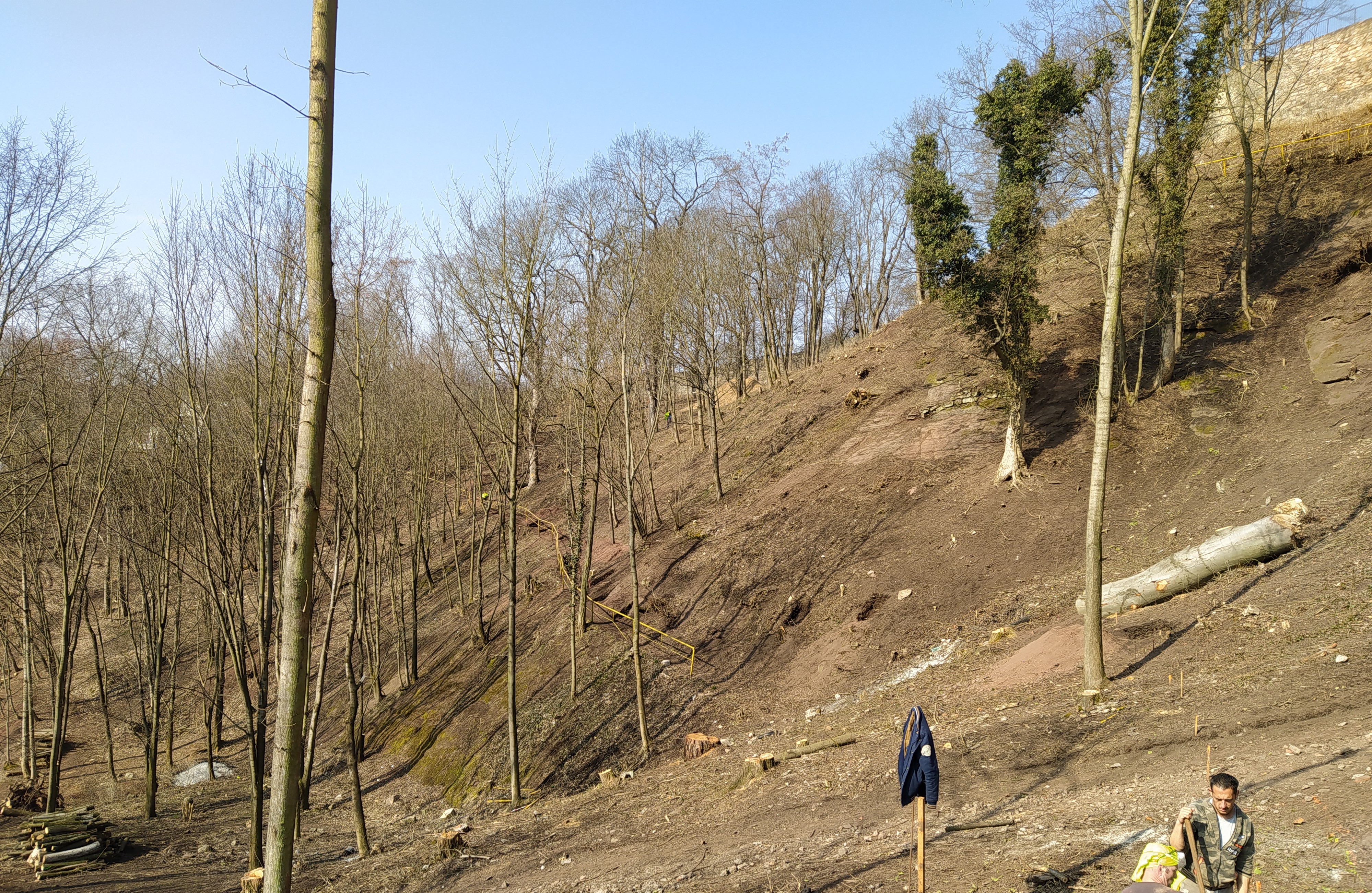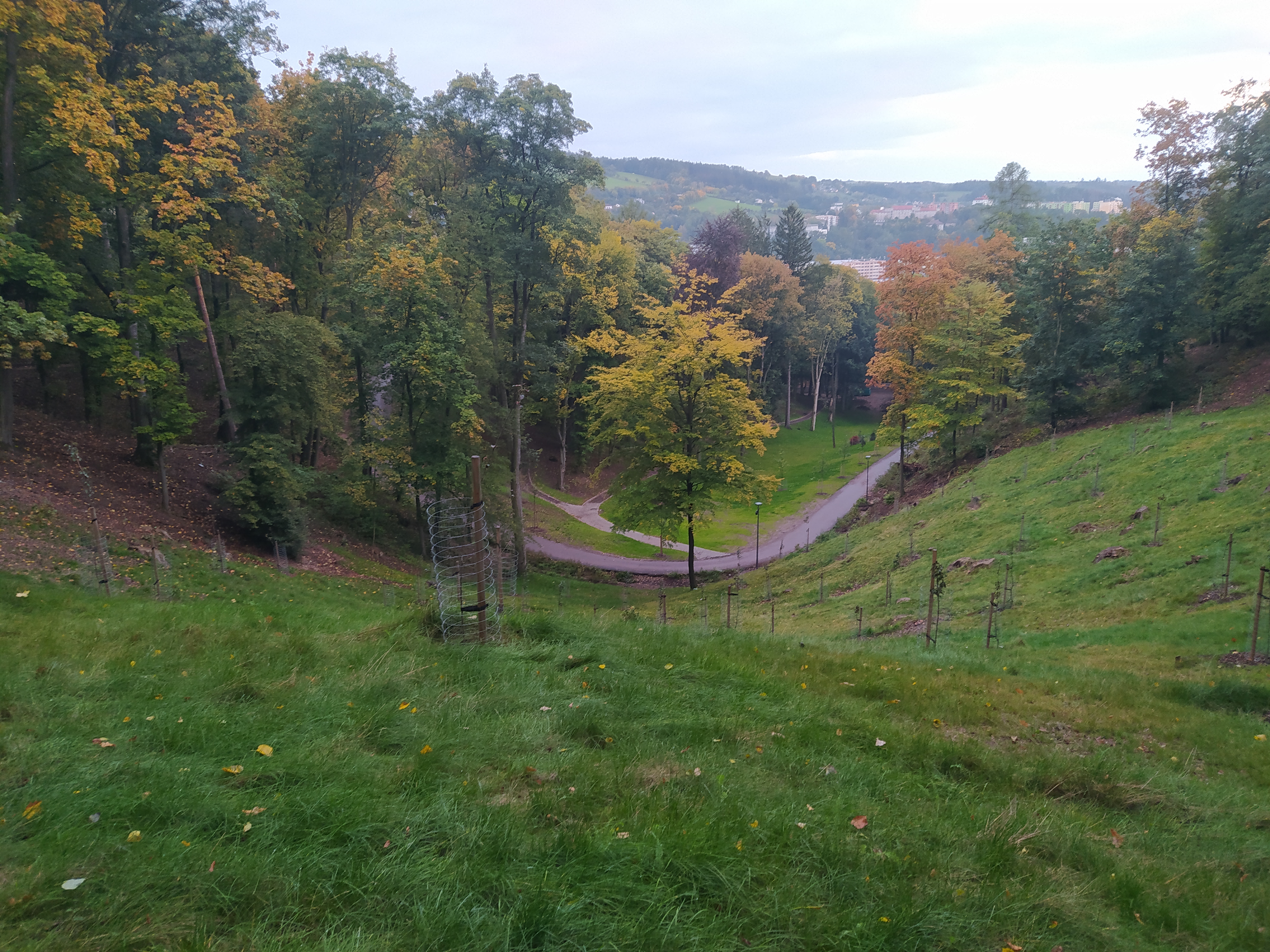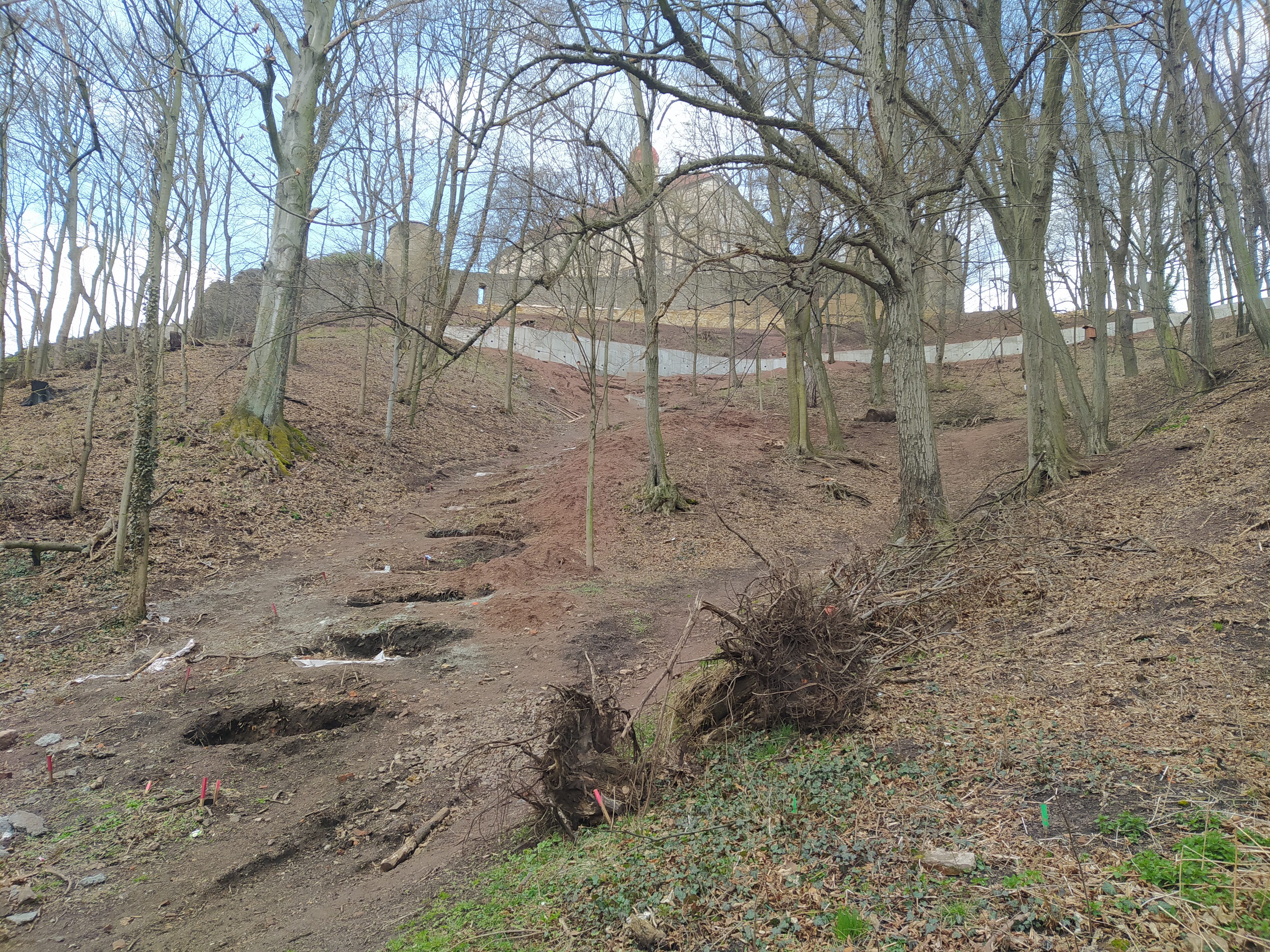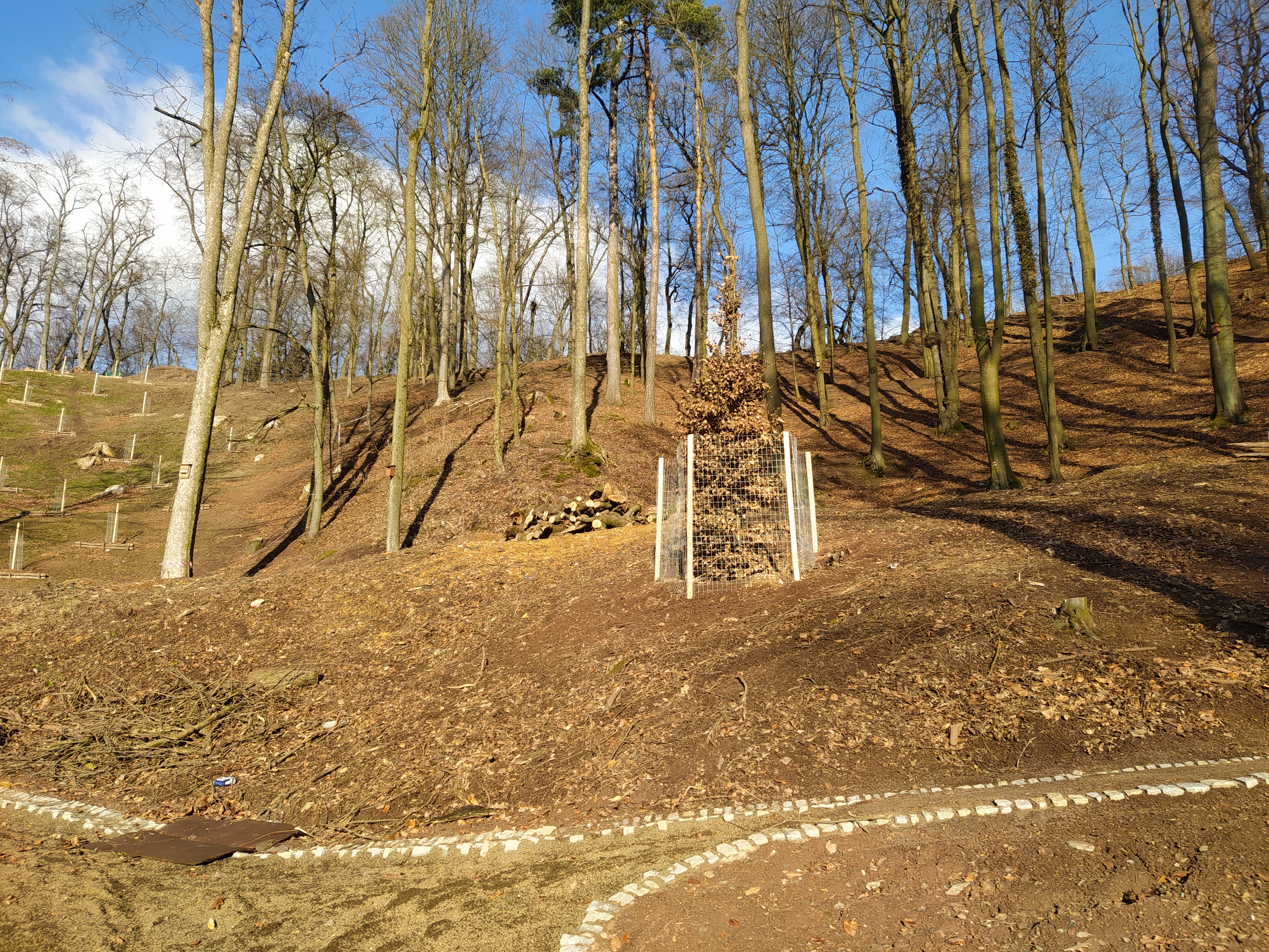 Proběhlo kácení dřevin, jež se během revitalizace ukázaly jako neperspektivní či byly poškozeny vlivem klimatických podmínek. Další vybrané dřeviny jsou i nadále monitorovány a případně ještě budou odstraněny. Plochy, na nichž byly dokončeny úpravy terénu, byly osazeny kokosovými rohožemi pro stabilizaci svahů a proběhla zde výsadba půdokryvných rostlin (břečťanů). V nejbližších týdnech budou vysazeny zbývající, budou vysazeny další solitérní dřeviny – v rámci náhradních výsadeb za ty již pokácené či za neperspektivní.