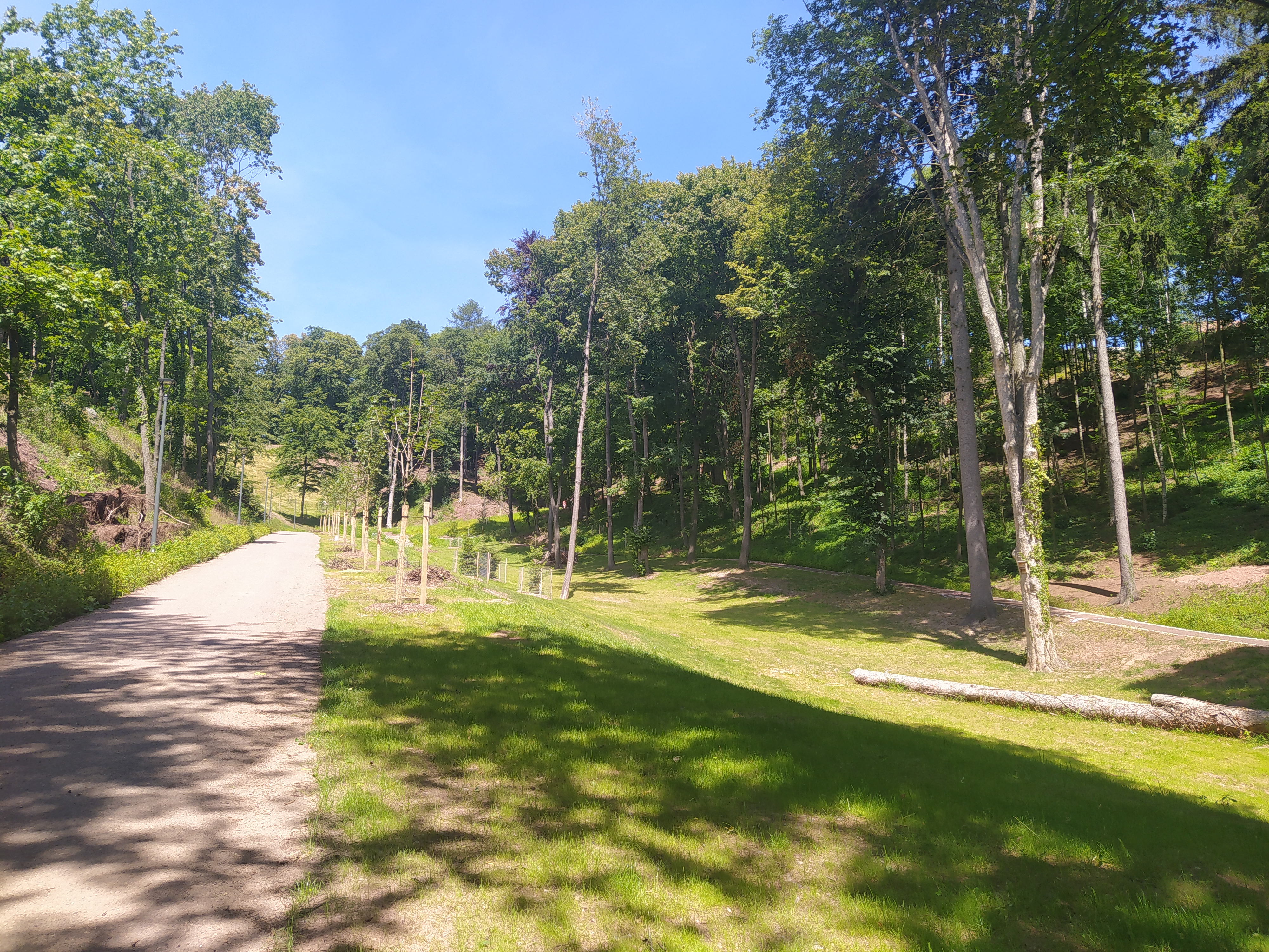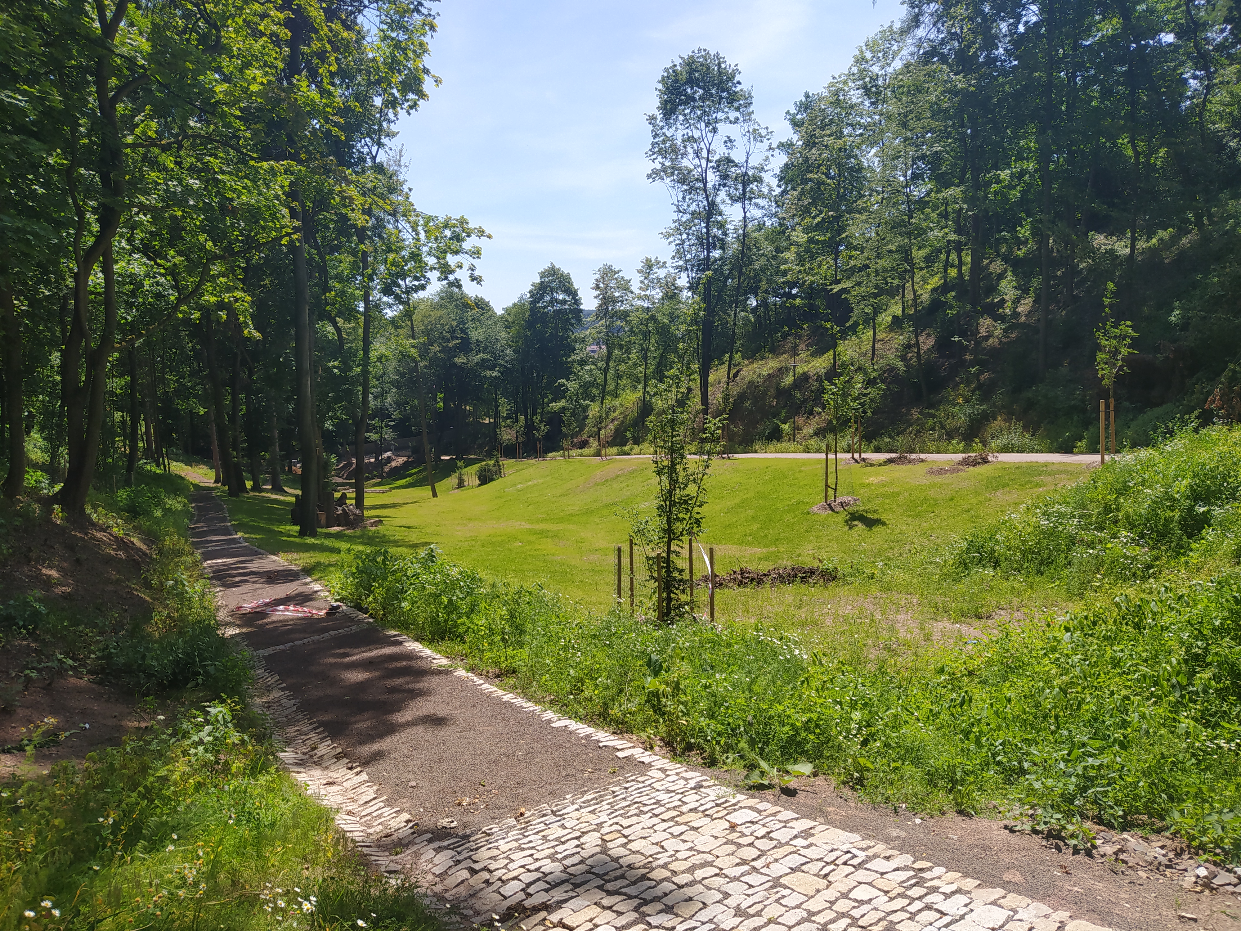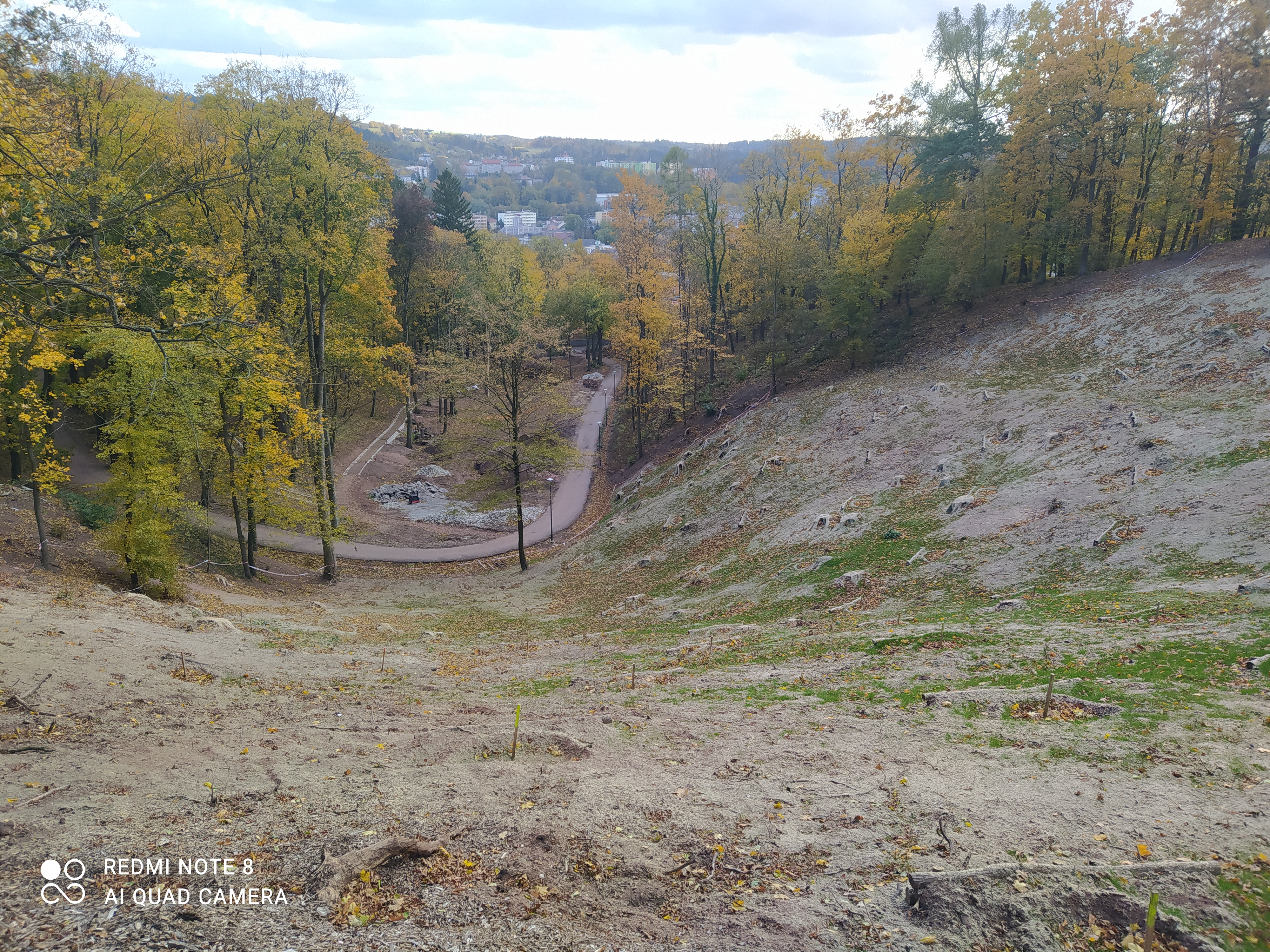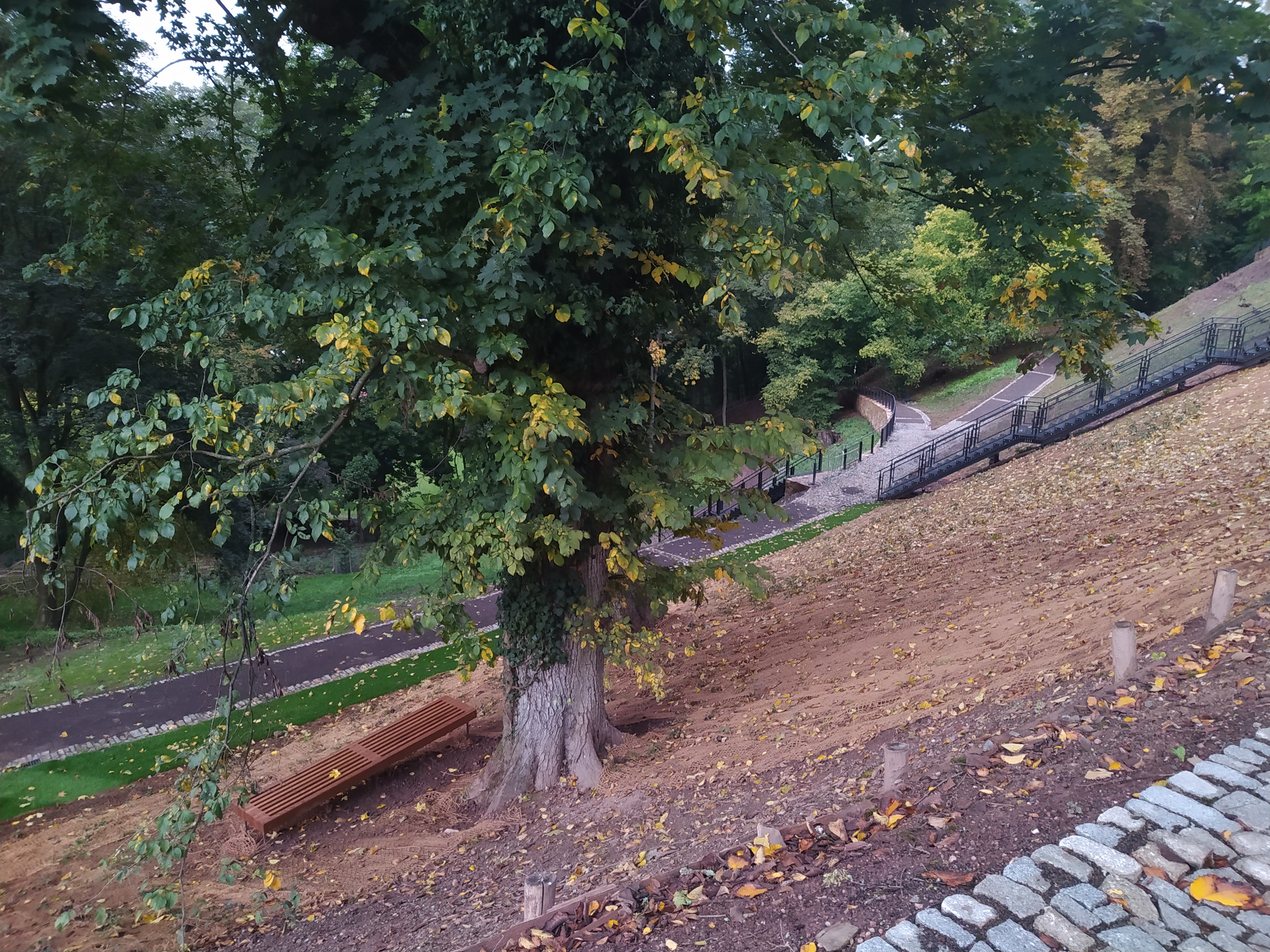 Proběhlo kácení dřevin, jež se během revitalizace ukázaly jako neperspektivní či byly poškozeny vlivem klimatických podmínek. Další vybrané dřeviny jsou i nadále monitorovány a případně ještě budou odstraněny. Plochy, na nichž byly dokončeny úpravy terénu, byly osazeny kokosovými rohožemi pro stabilizaci svahů a proběhla zde výsadba půdokryvných rostlin (břečťanů). V nejbližších týdnech budou vysazeny zbývající, budou vysazeny další solitérní dřeviny – v rámci náhradních výsadeb za ty již pokácené či za neperspektivní.