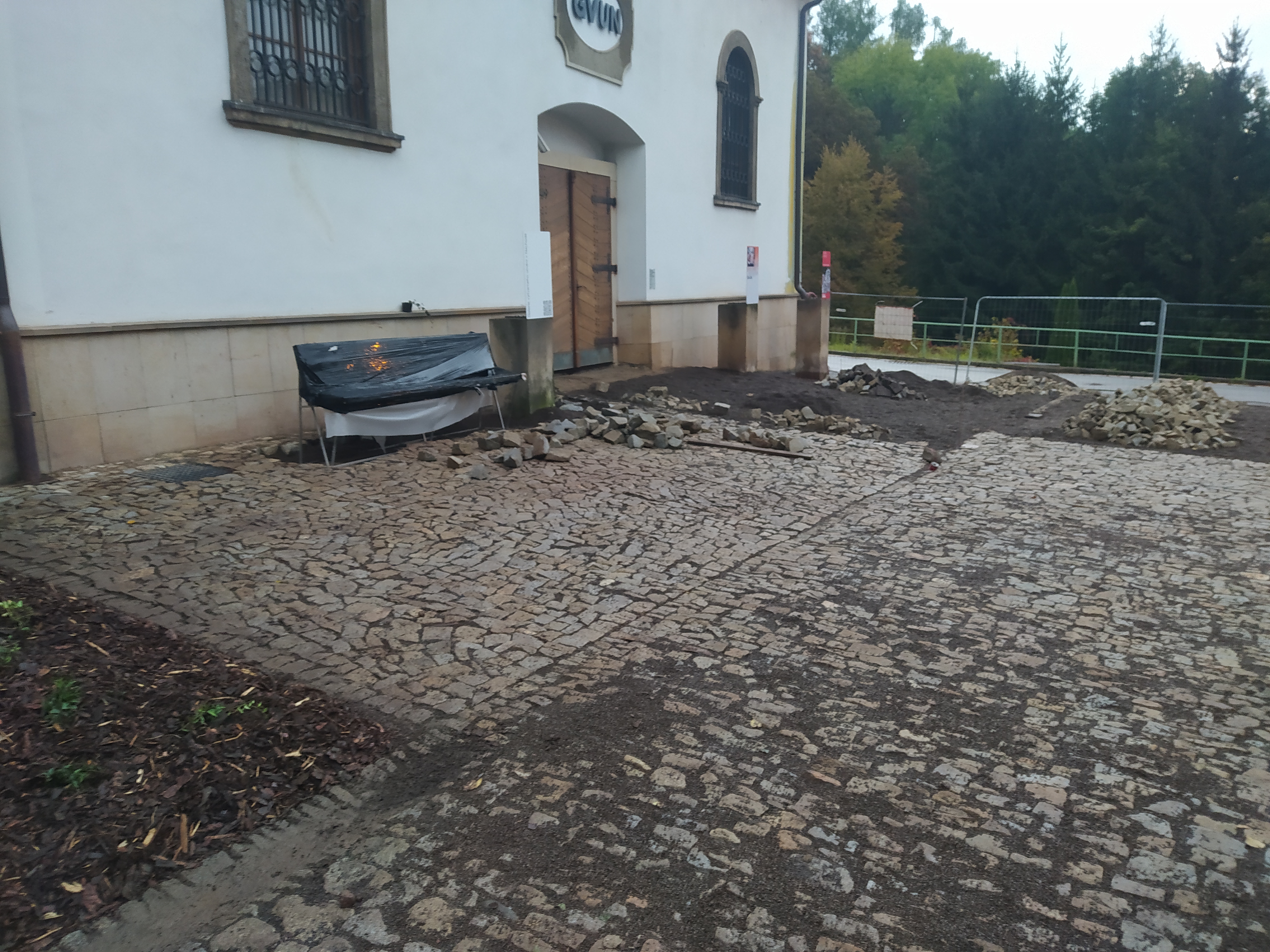 Pokračuje i realizace cestního systému – pokládání nových mlatů a kamenných obrub a štětových povrchů v Idiných sadech a naproti SVČ Déčko včetně montáže zemních svítidel. Probíhají přípravné práce na realizaci nového nočního osvětlení zámku.