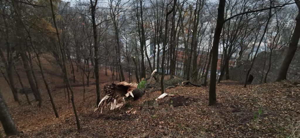 Stavbaři se také museli potýkat s následky vichřice – musely být odstraněny spadlé a vyvrácené stromy, ulomené větve ad.