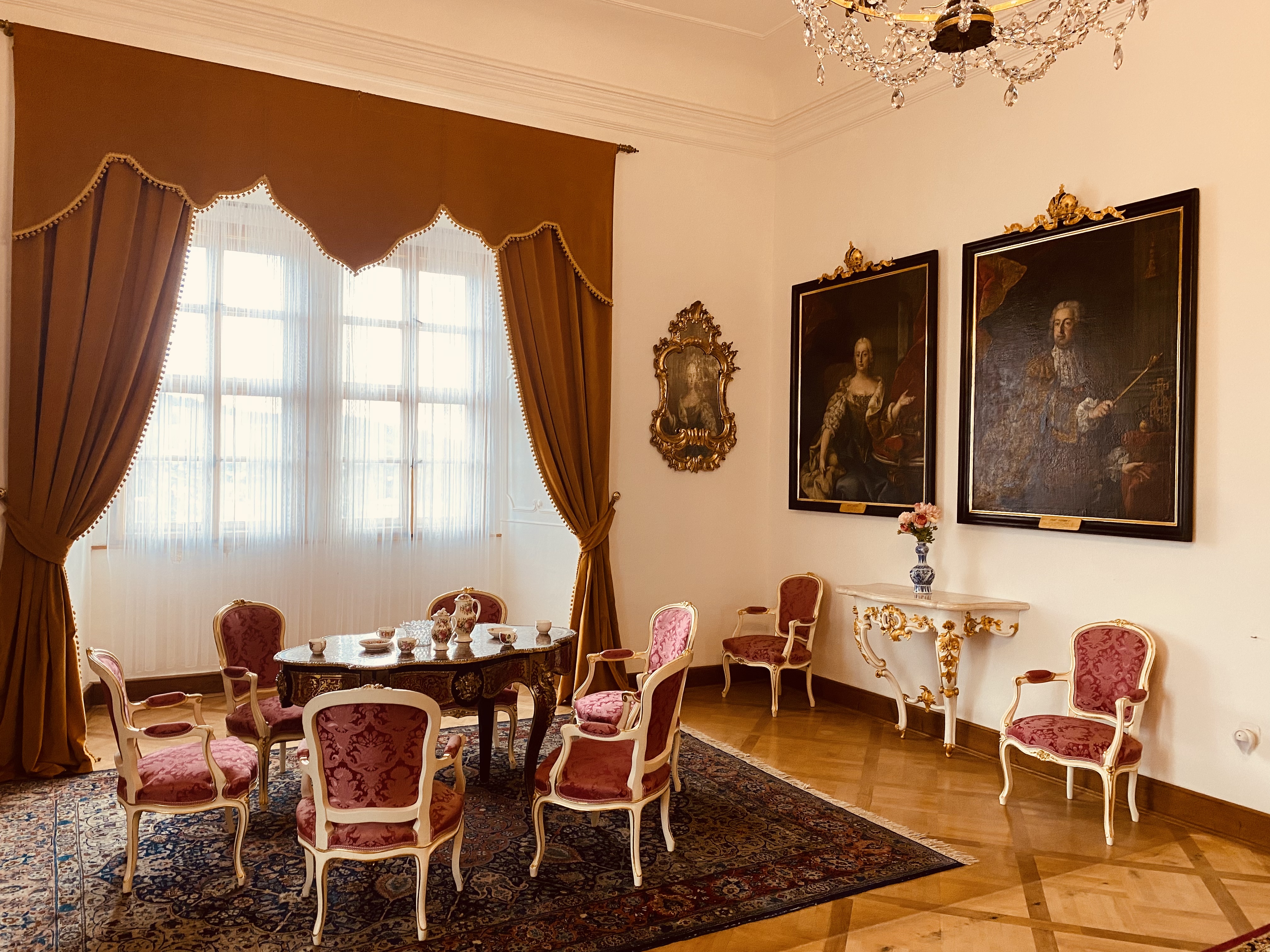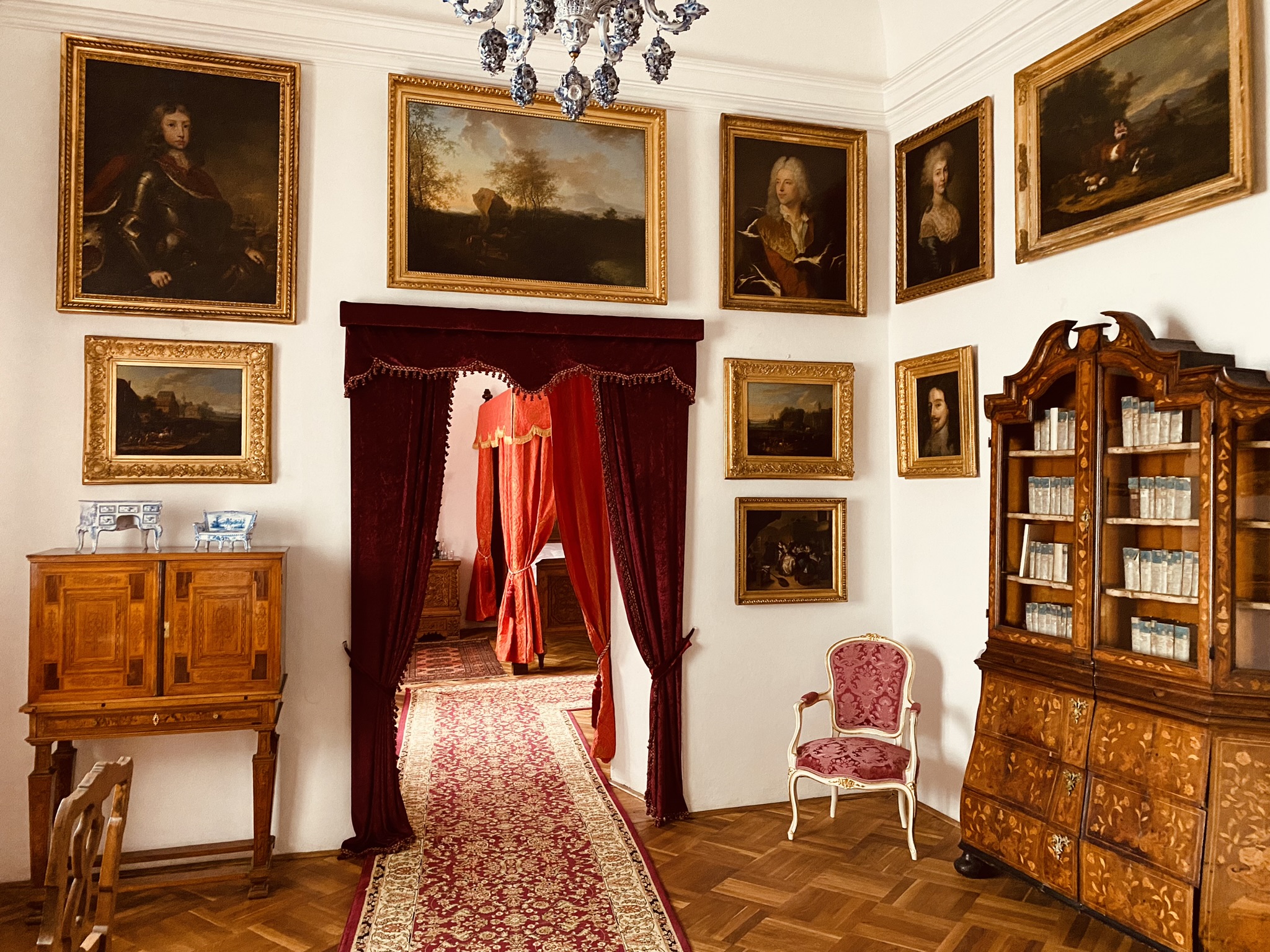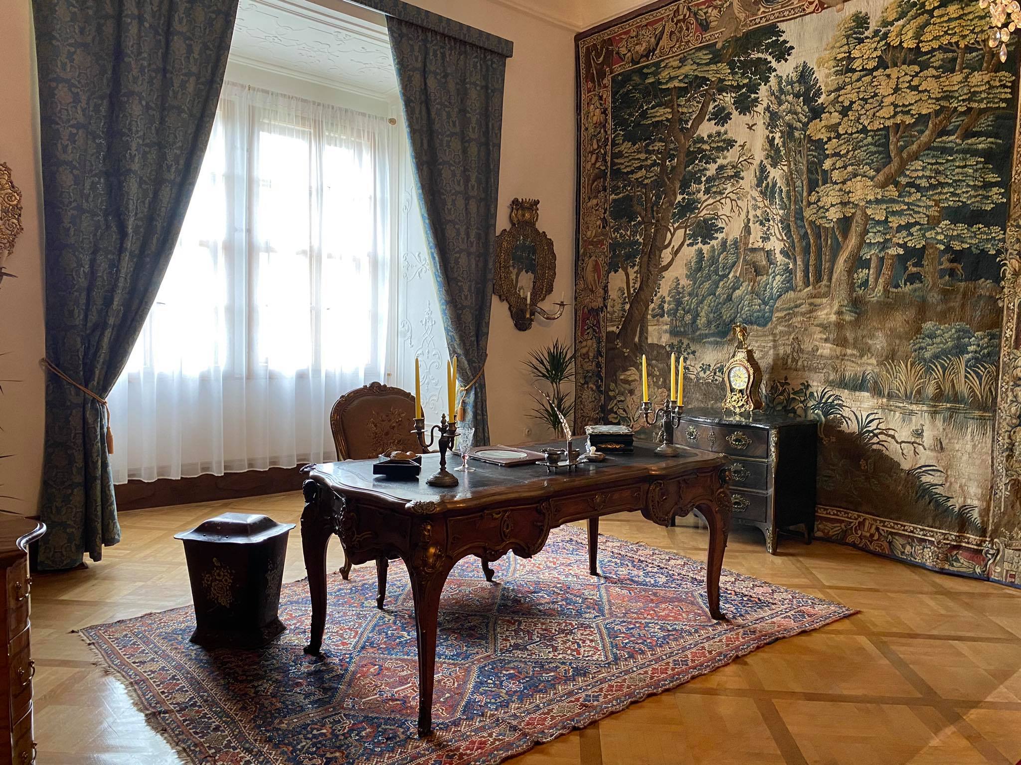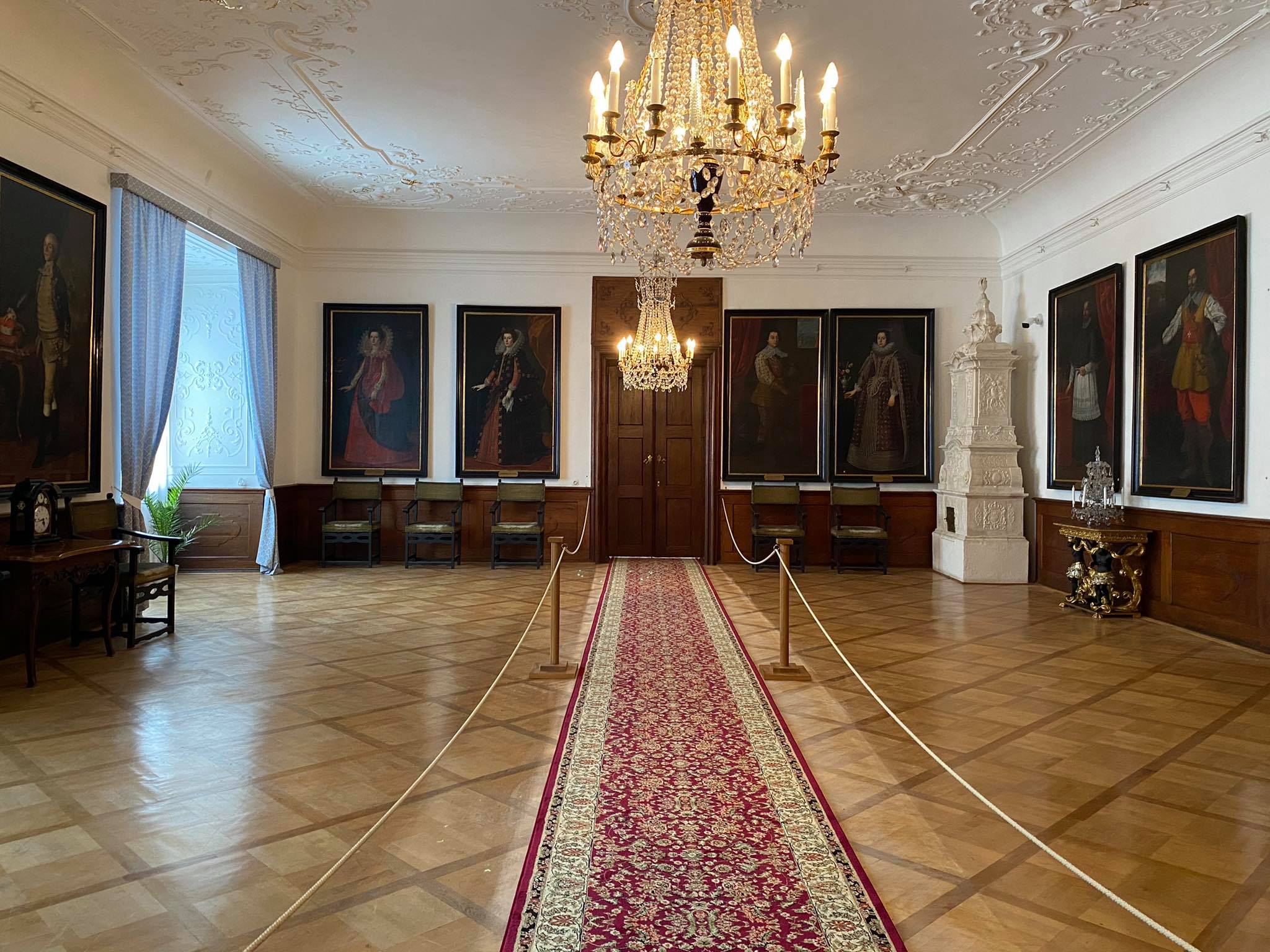 Reprezentacyjne pomieszczenia na pierwszym piętrze zamku z historycznymi wnętrzami z okresu XVII i XVIII wieku, kiedy Náchod był własnością włoskiej rodziny Piccolomini.