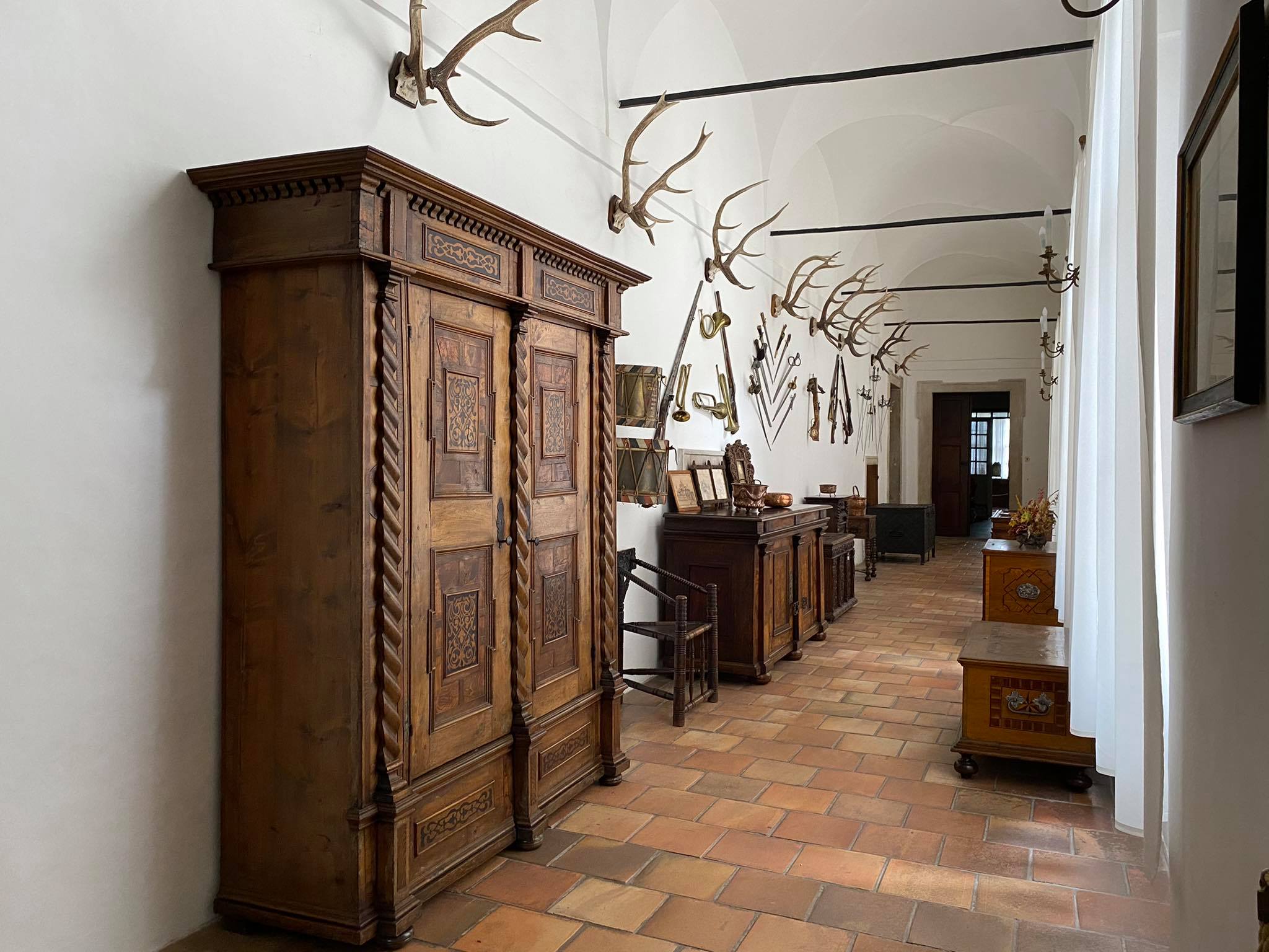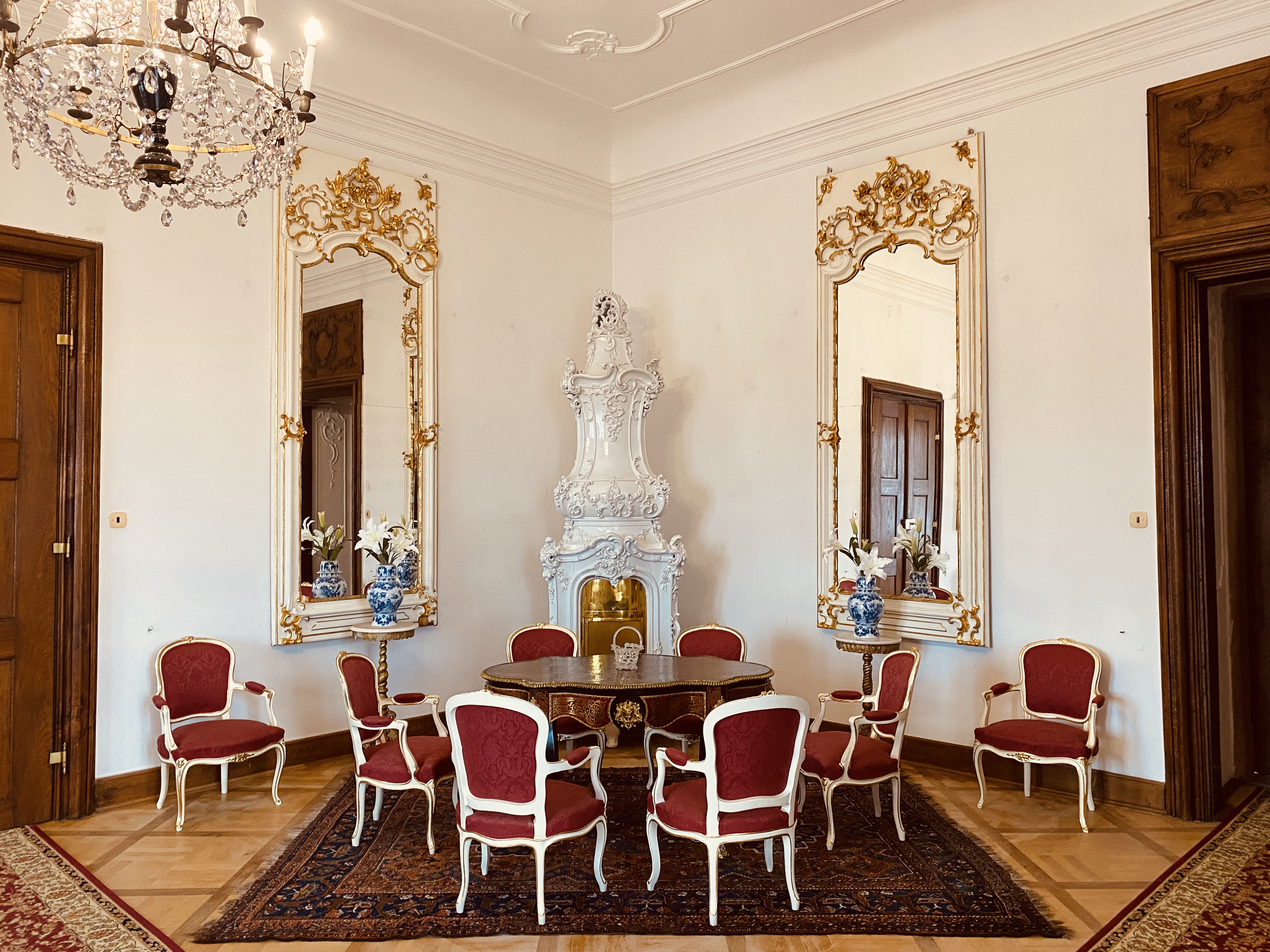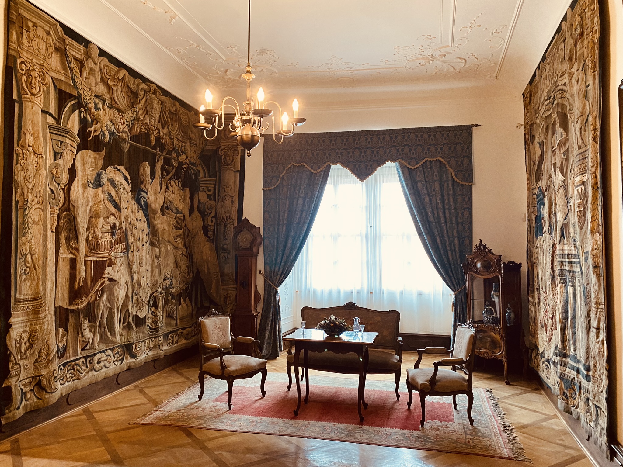 Reprezentacyjne pomieszczenia na pierwszym piętrze zamku z historycznymi wnętrzami z okresu XVII i XVIII wieku, kiedy Náchod był własnością włoskiej rodziny Piccolomini.