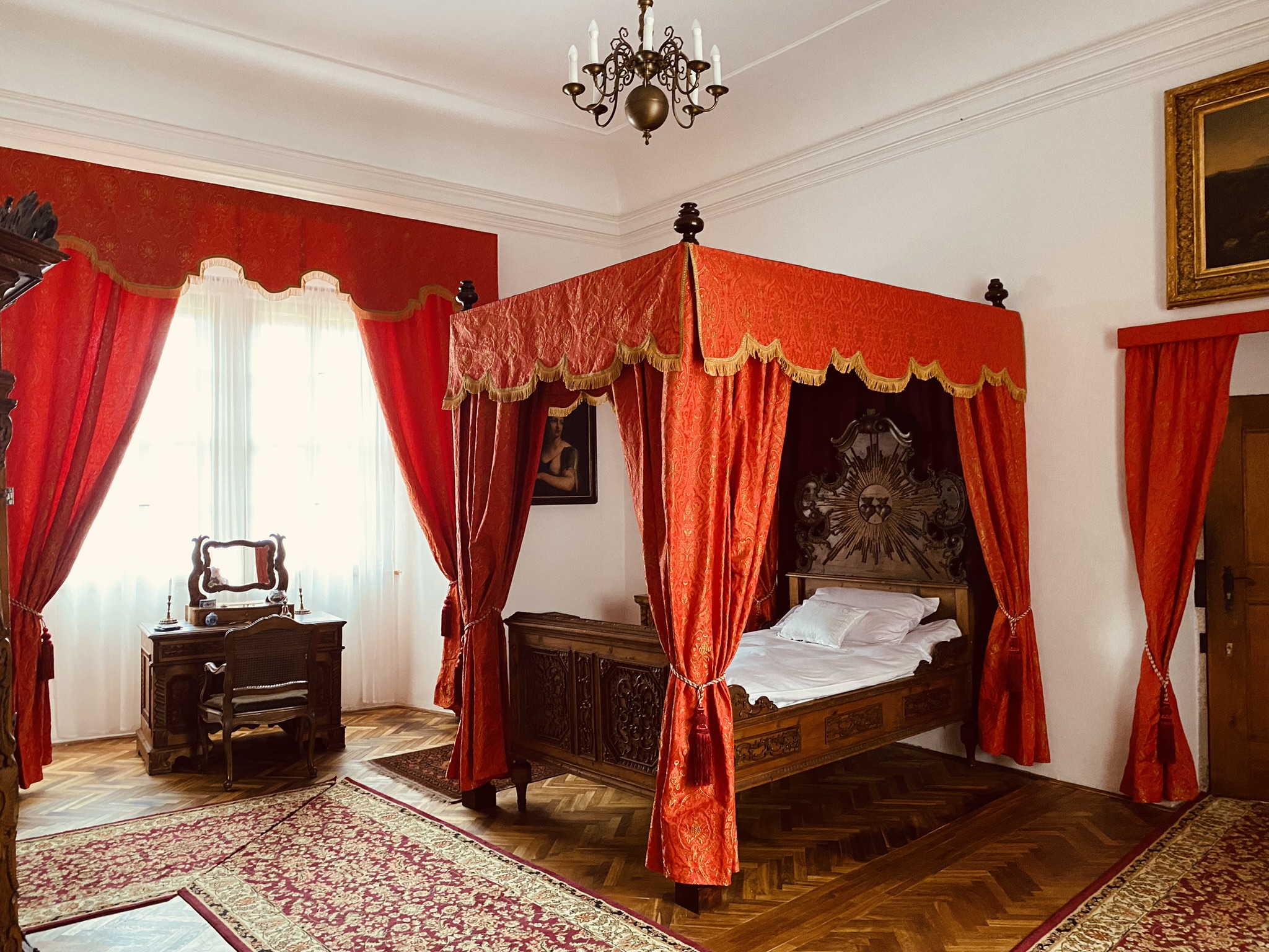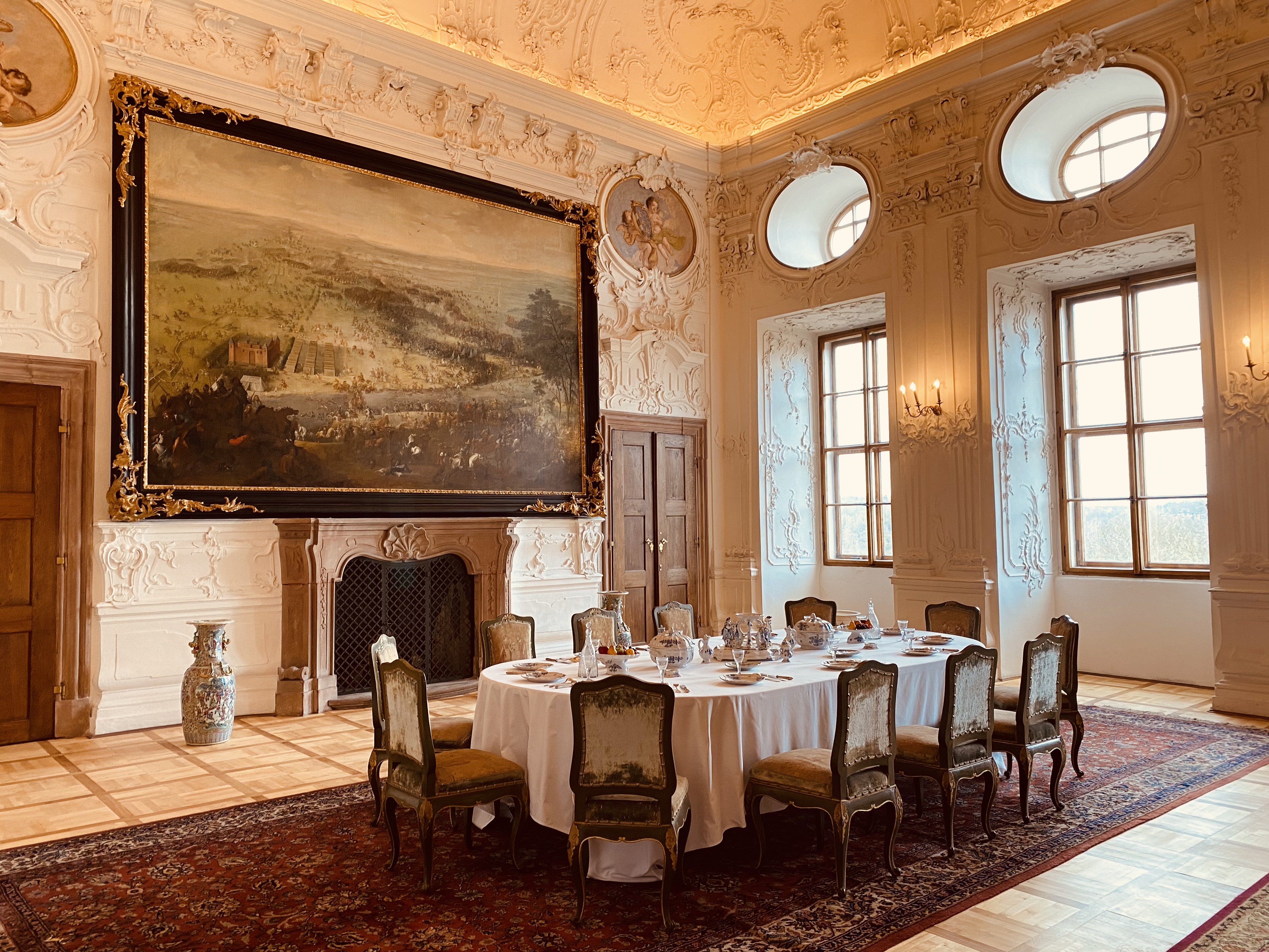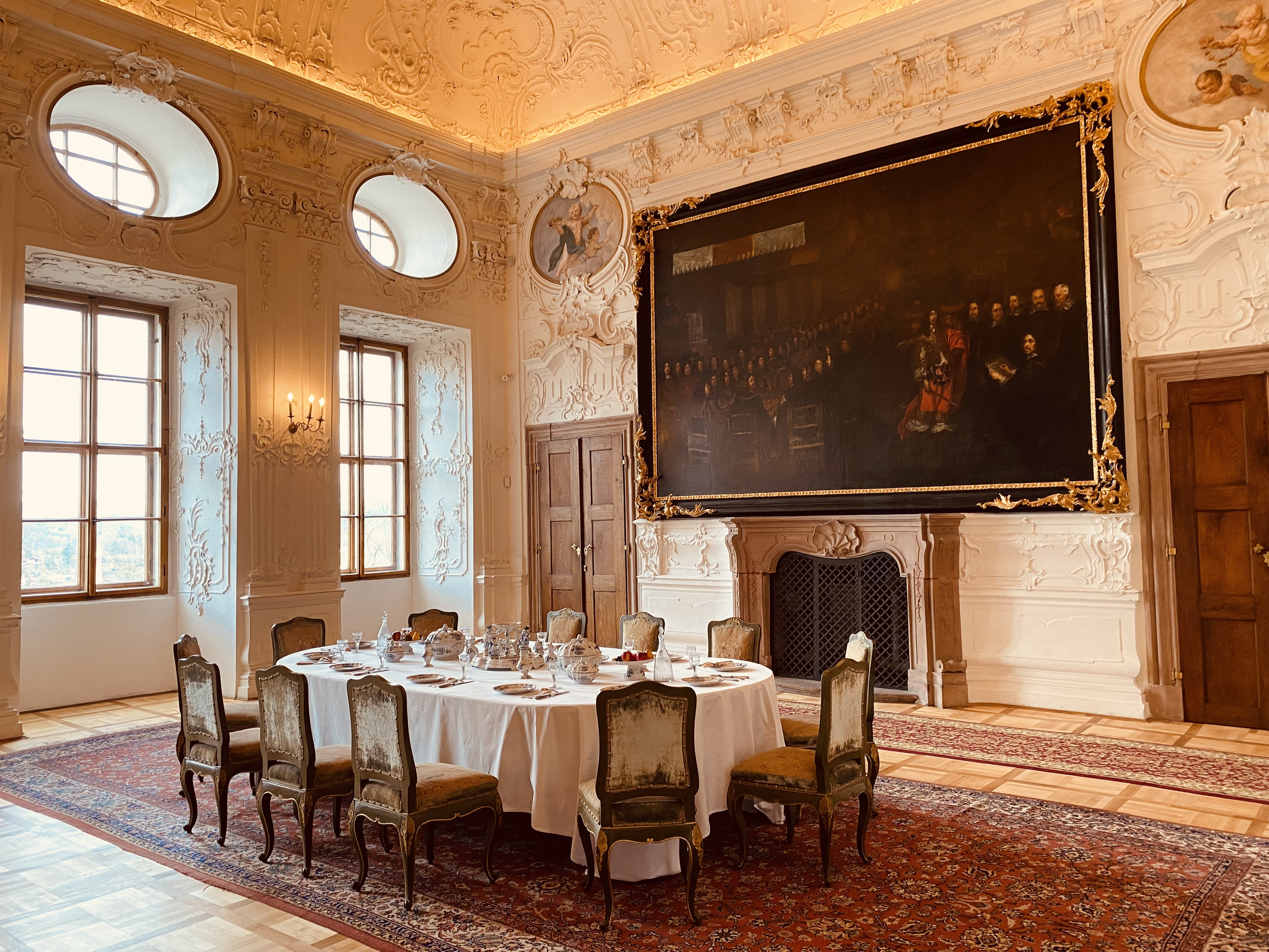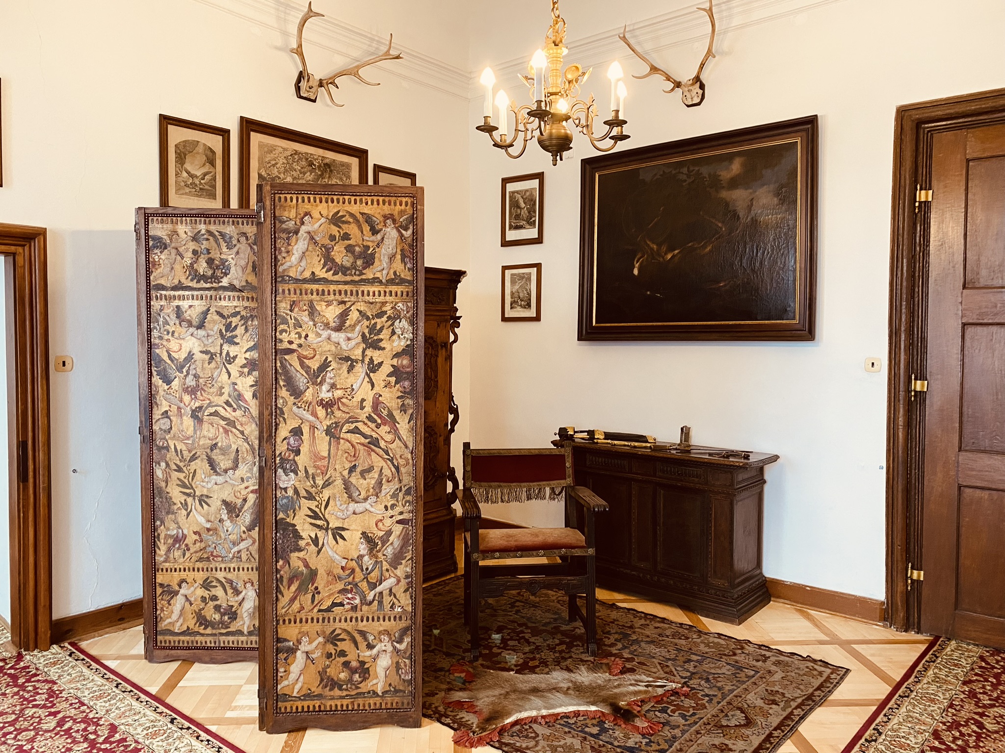Reprezentacyjne pomieszczenia na pierwszym piętrze zamku z historycznymi wnętrzami z okresu XVII i XVIII wieku, kiedy Náchod był własnością włoskiej rodziny Piccolomini.